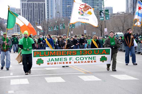 La fête de la St Patrick est parrainée par la « Pipegitters Union », (en gros l’Union des Tuyauteurs et Plombiers de Chicago), et c’est à cet organisme qu’il incombe la tâche de colorer la rivière en vert.