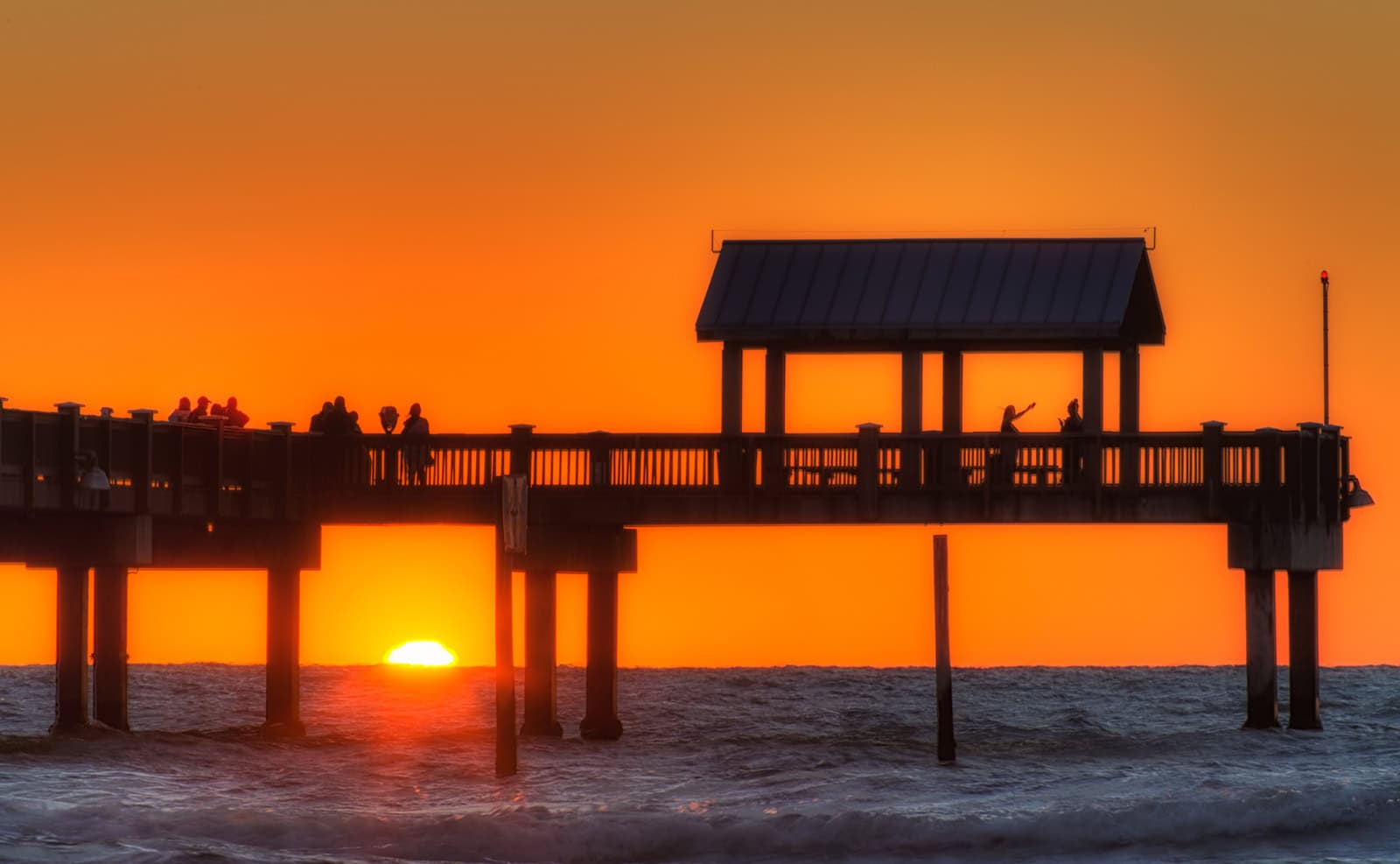 La large plage de sable fin et la jetée bien connue de Clearwater Beach attirent les habitants et les visiteurs pour cet événement spectaculaire de chaque soir, sur le golfe du Mexique. Les bars et restaurants à proximité sur la plage offrent également une vue parfaite sur l’horizon et le ciel, alors que le soleil plonge dans la mer. Du rouge, de l’orange et du jaune à gogo, un vrai bain de couleurs chaudes !