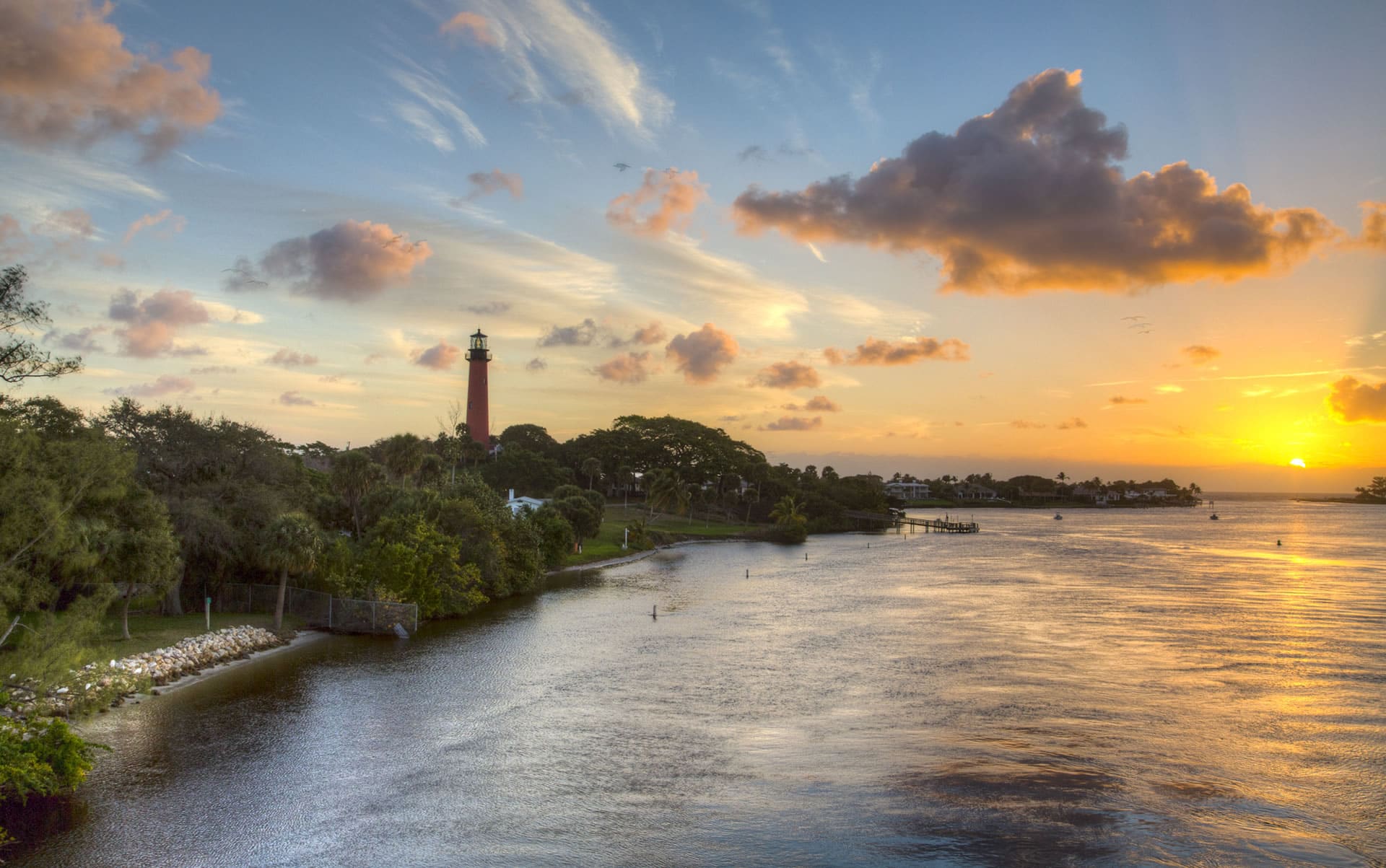 La côte est à elle aussi des endroits parfaits pour admirer le soleil se coucher, et notamment au phare de Jupiter Inlet. Cette icône rouge imposante se trouve sur une crique juste au large de la côte. Si vous traversez la rivière Loxahatchee pour vous rendre au bar Tiki Bar Square ou à la plage U Tiki, vous aurez une vue ouest du phare pour le coucher du soleil.