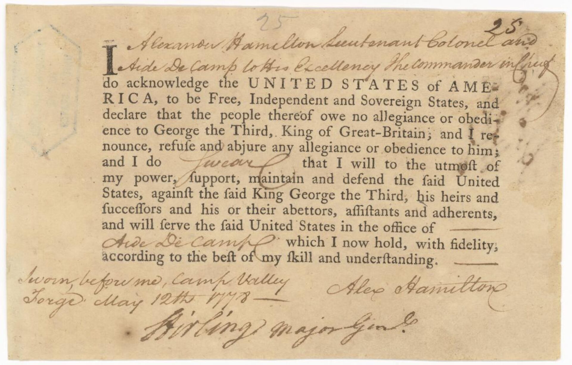 Des témoignages poignants signés en pleine guerre d’Indépendance par les officiers de l’armée continentale. Vous pourrez notamment y observer les signatures authentiques de George Washington, Alexander Hamilton et Aaron Burr.