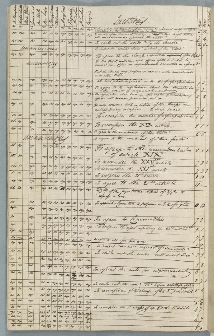 Le document officiel (Tally of Votes) retranscrivant le décompte des votes des différentes délégations, actant l’approbation du texte définitif de ce qui allait devenir la loi suprême du pays.