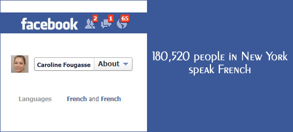 • New York– You are bound to run into someone who speaks French as you walk the Streets of New York with 180,250 of 11,871,000 Facebook users that speak French.