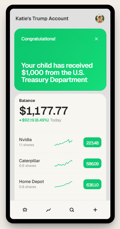 Pour les enfants nés entre 2025 et 2028, le Trésor américain prévoit une contribution unique de 1 000 $ versée directement dans le Trump Account. Cette contribution ne compte pas dans le plafond annuel de 5 000 $. Les premiers versements sont prévus à partir du 4 juillet 2026.