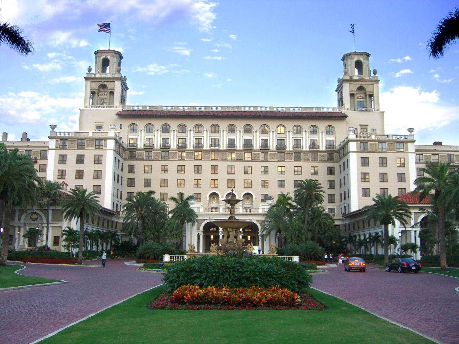 De la multitude d’hôtels prestigieux alignés sur la côte , les seuls 2 restés originels sont le Breakers et le Whitehall. L’arrivée au Breakers est impressionnante avec ses rangées de hauts palmiers et ses parterres fleuris, un peu comme au Biltmore de Coral Gables à Miami, mais en plus long, en plus grand, et en plus haut.
