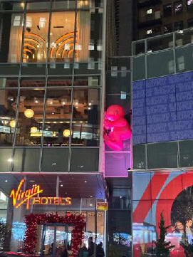 Depuis le 15 janvier et jusqu’au 27 février 2026, dans le cadre de “Winter Glow”, le quartier de Flatiron NoMad se transforme en un musée à ciel ouvert. Neuf sculptures monumentales de Mister Pink (en résine ou gonflables) ont pris possession de lieux emblématiques comme Madison Square Park, le Virgin Hotel ou encore Porcelanosa. Ce parcours ludique invite les passants à une véritable chasse au trésor artistique, apportant une touche de couleur vibrante au gris de l’hiver new-yorkais.