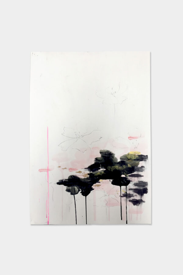 The Art Motion offers you the rare opportunity to buy a signed, unique original drawing (which she usually keeps) that was acquired at Kim’s studio during a small open doors event. This is a large, oneiric composition, combining pencil, gouache, and charcoal on thick art paper.