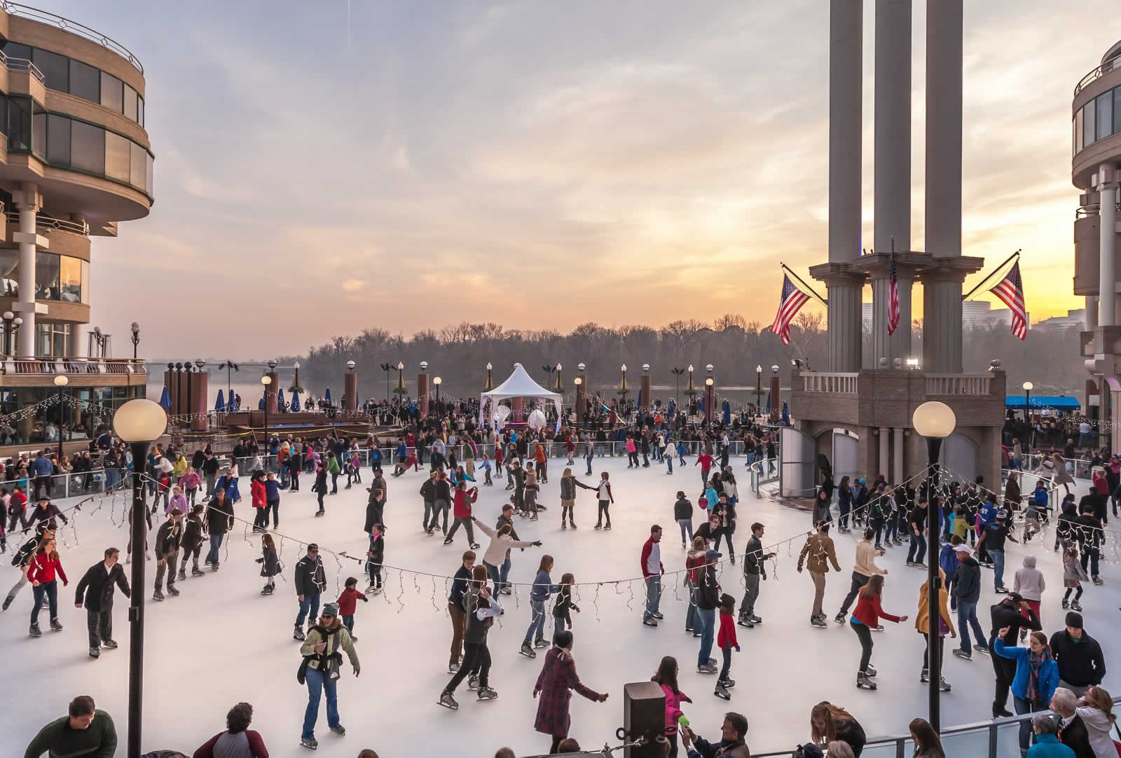 La belle patinoire de Washington Harbour est la plus grande patinoire extérieure de Washington D.C., elle est même plus grande que celle du Rockefeller Center de New York. La patinoire est ouverte tous les jours de novembre à mars, et offre de magnifiques vues sur la rivière Potomac.